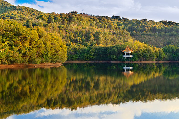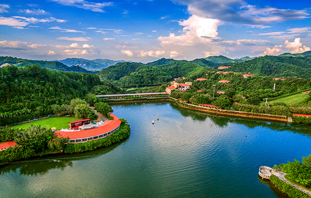 龙潭湖花径景区位于云浮市新兴县六祖镇国恩寺后山上的龙潭寺前,此处远眺新兴国恩寺,寺后龙山环抱,禅林掩映,湖水清澈,仿佛匿于山水间,随钟磬之音,散落星辰,不绝于耳。