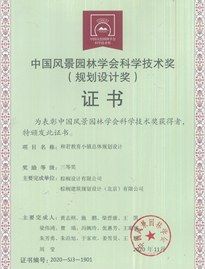 和君教育小镇总体规划设计荣获2020年中国风景园林学会科学技术奖证三等奖