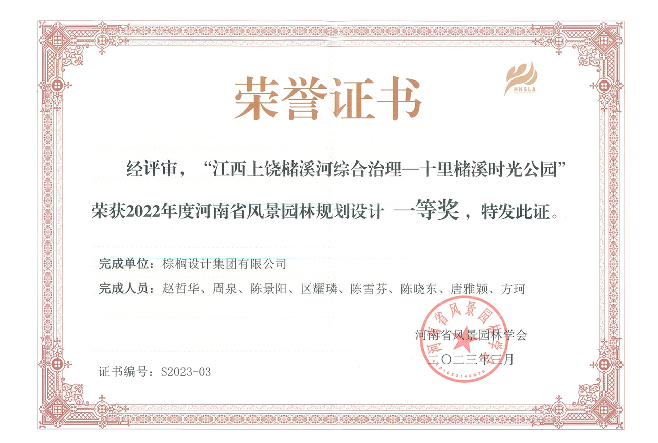 《江西上饶槠溪河综合治理——十里槠溪时光公园》获中国风景园林科学技术奖(规划设计奖)一等奖