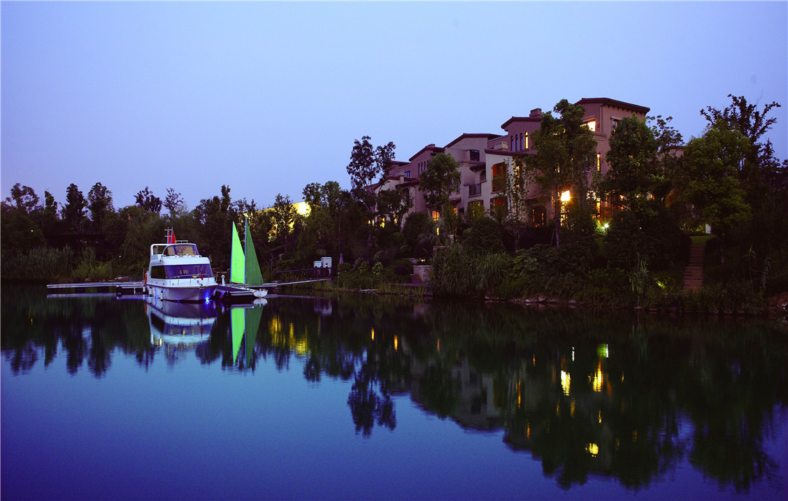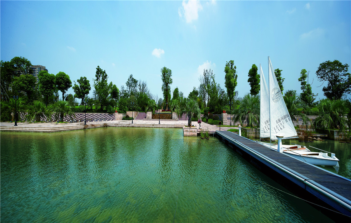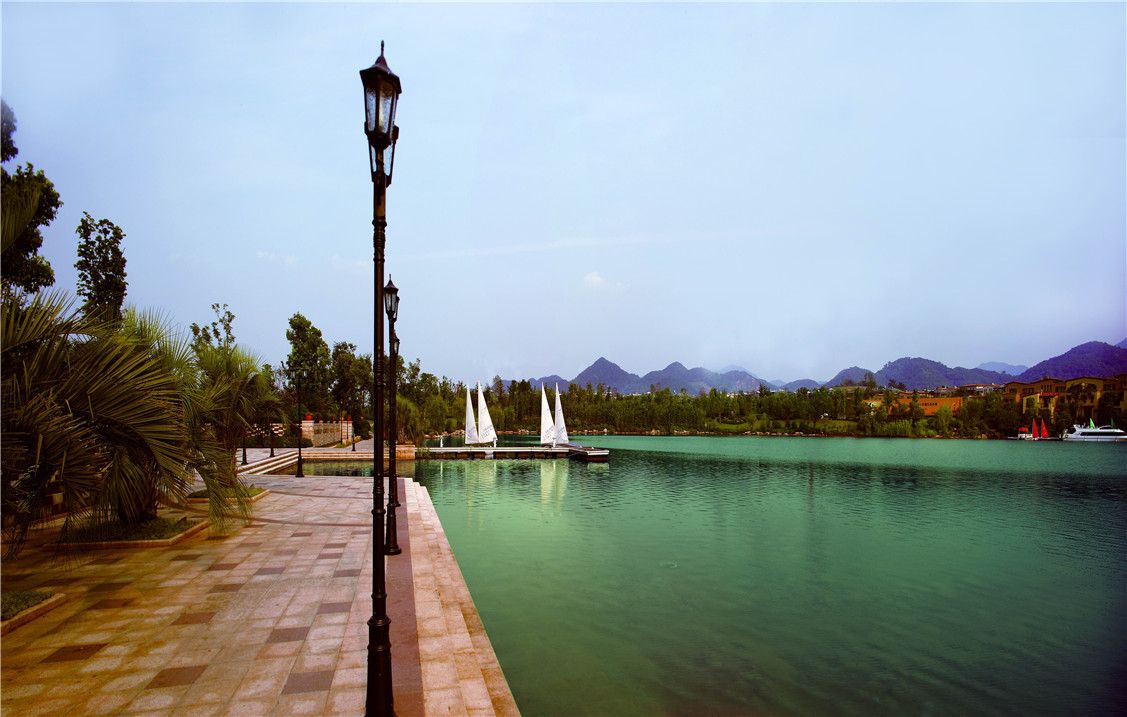在居住区项目中,对于一些场地特征比较明显的项目常常是我们设计师的一份惊喜,这种场地的特质不但能提供很多信息与设计灵感,同时我们也会被这特质背后所隐藏的巨大潜力激发出源源动力与创造力。 基地位于杭州市大城西区域闲林镇中心区,北面为规划中的西溪湿地保护区(约3000亩)。场地中央有一块因挖矿而产生的巨大矿坑,约13万㎡。该矿坑后来被逐步改造为一个人工湖,而我们的项目基地正是以这个巨大人工湖为核心展开。