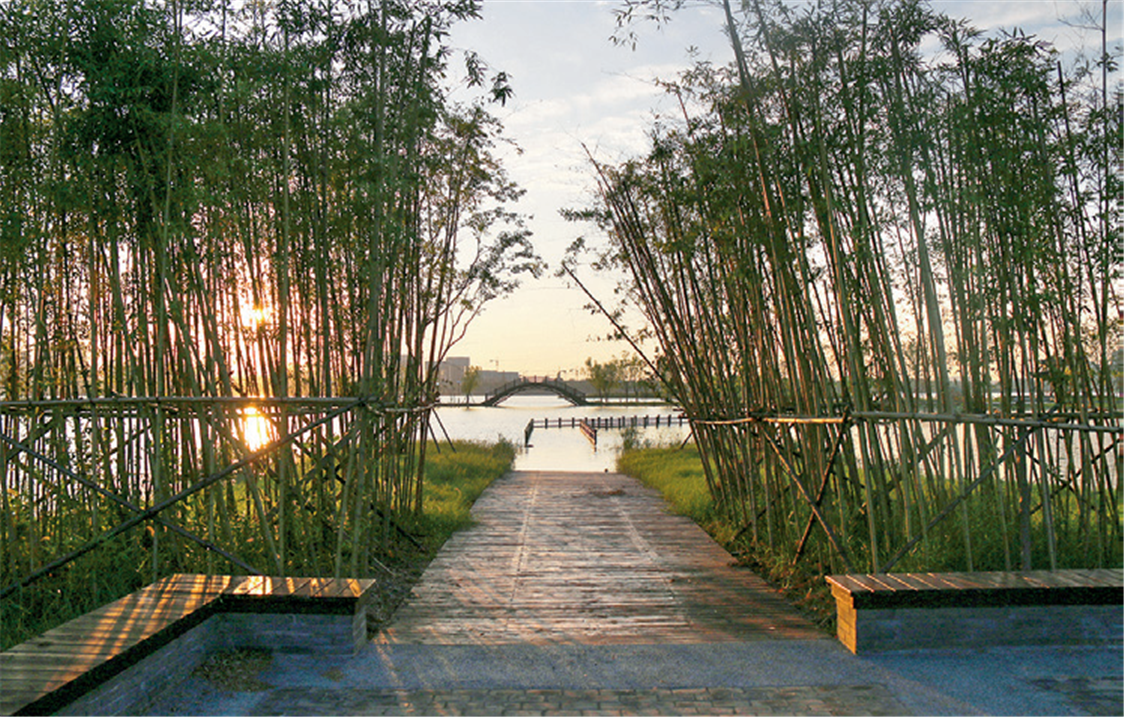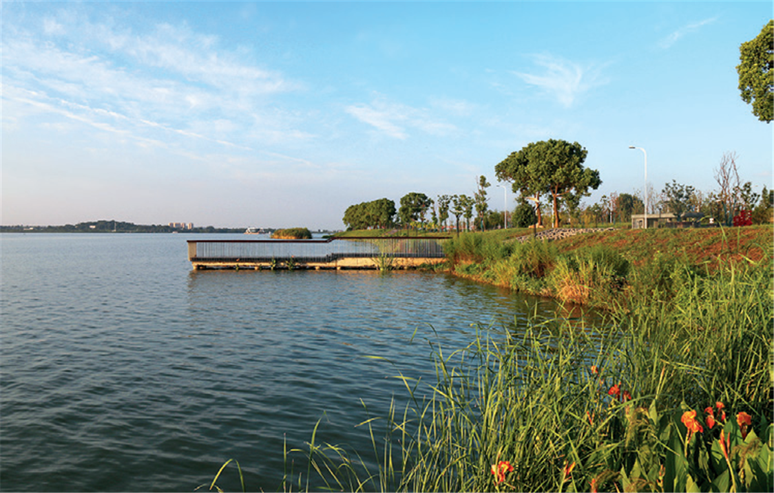 柳叶湖位于常德市北部新城,其水域面积达 21.8 km2,约为杭州西湖的 3 倍,是中国暨武汉东湖后水域面积排名第二的城市湖泊,并享有“中国城市第一湖”的美誉。环湖风光带全长约 30 km,前 15 km 已于数年前建成。2014 年我们受常德市政府委托,规划建设其余 15 km 的柳叶湖环湖风光带,历时 3 年,项目现已建成开放。规划希望以“社会生态记忆”为主要设计策略,再现当时的自然景色和人文历史。同时完善公共设施,植入适合现代城市生活的空间,建设一个充满活力的未来新城中的城市公共开放空间,成为市民娱乐、健身、休闲、观光的环湖风光带。