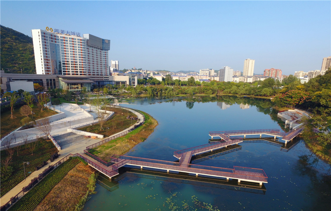 2014 年,湘西州府吉首市还是一个贫困县城。市委市政府为打下“脱贫摘帽”的攻坚战,启动系列城市扩容提质工作。棕榈设计、棕榈股份有幸携手市公用事业管理局参与吉首创建省级和国家级园林城市工作。历经4 年努力,终于在2018 年12 月25 日取得阶段性成果,湖南省人民政府下发通知,吉首市正式被命名为“湖南省园林城市”。