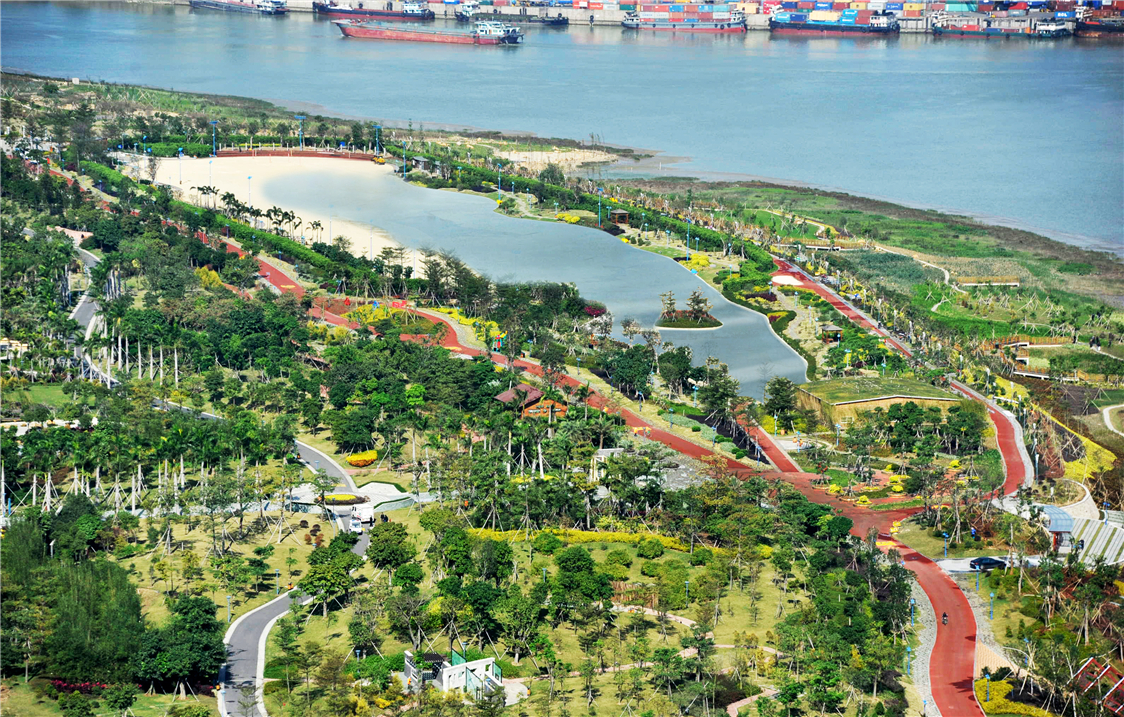 方案注重对自然的保护和利用,设计了佛山市最大的城市中心湿地公园,植物的配置强调乡土性,还原河流的生态机能。在城水关系上,结合城市的发展脉搏,未来游船码头、沙滩泳池的兴建将拉近城与水的距离,亲水成为重要的城市行为。