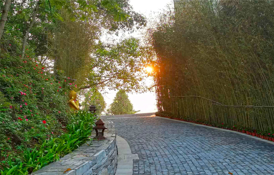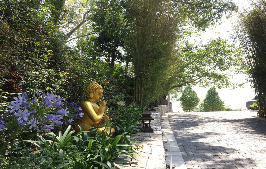 佛学场所的“自发式景观”——僧人喜欢在寺院里种植可开花结果的植物,植物开花或者结果成熟后,他们会用这些花果来供奉佛祖。在这次的景观改造中,我们保留了几颗火烧花,增加了多颗鸡蛋花树,确保了场地的实用性。而最感人的莫过于,我们营造的景观,僧人接受了,并且自觉地为这个场所再创造更具佛学意境的景观。