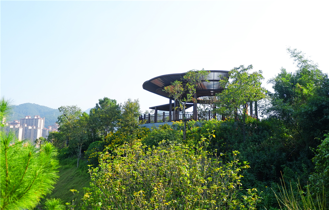 项目通过对山体公园的改造设计,打造了一处供市民休闲、健身娱乐的场地,蜿蜒的园路、葱绿的草木、开敞的观景台,让市民在登山运动的同时能欣赏到园中美景。项目成为梅州新城一个重要的景点,对外展示着梅州新城的活力。