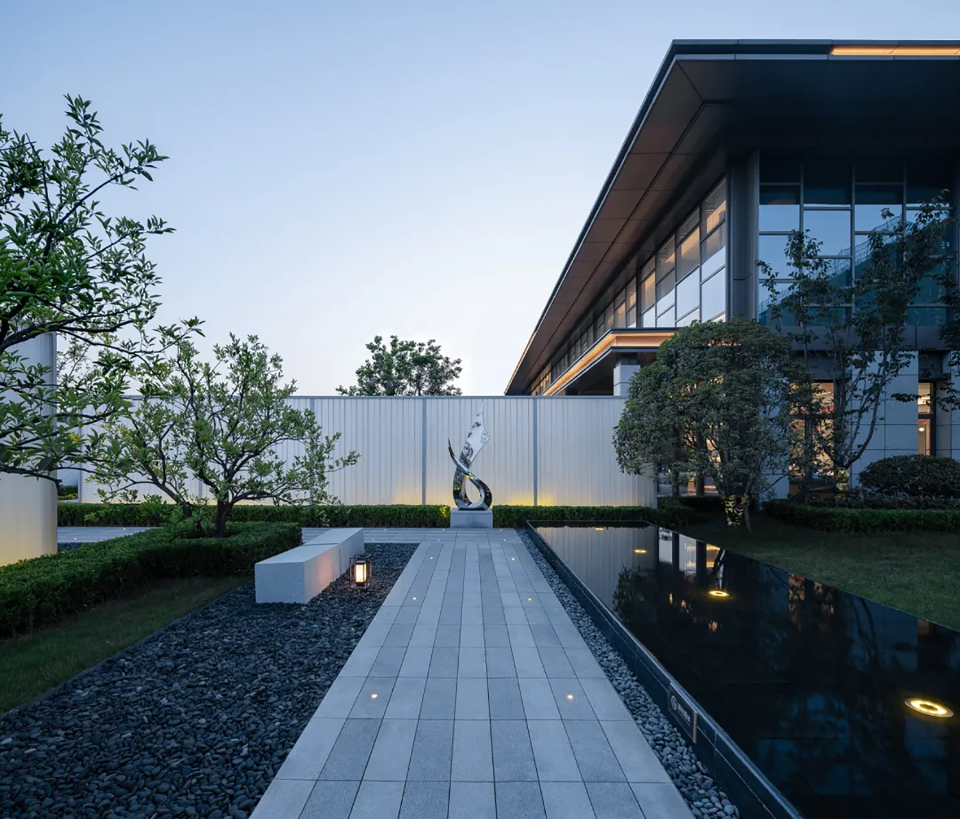 项目位于江苏省溧阳市城区西北板块,示范区为整个项目的南侧,景观设计面积约4600平米。售楼处位于示范区中心位置,建筑风格为现代简洁的二层会所建筑。