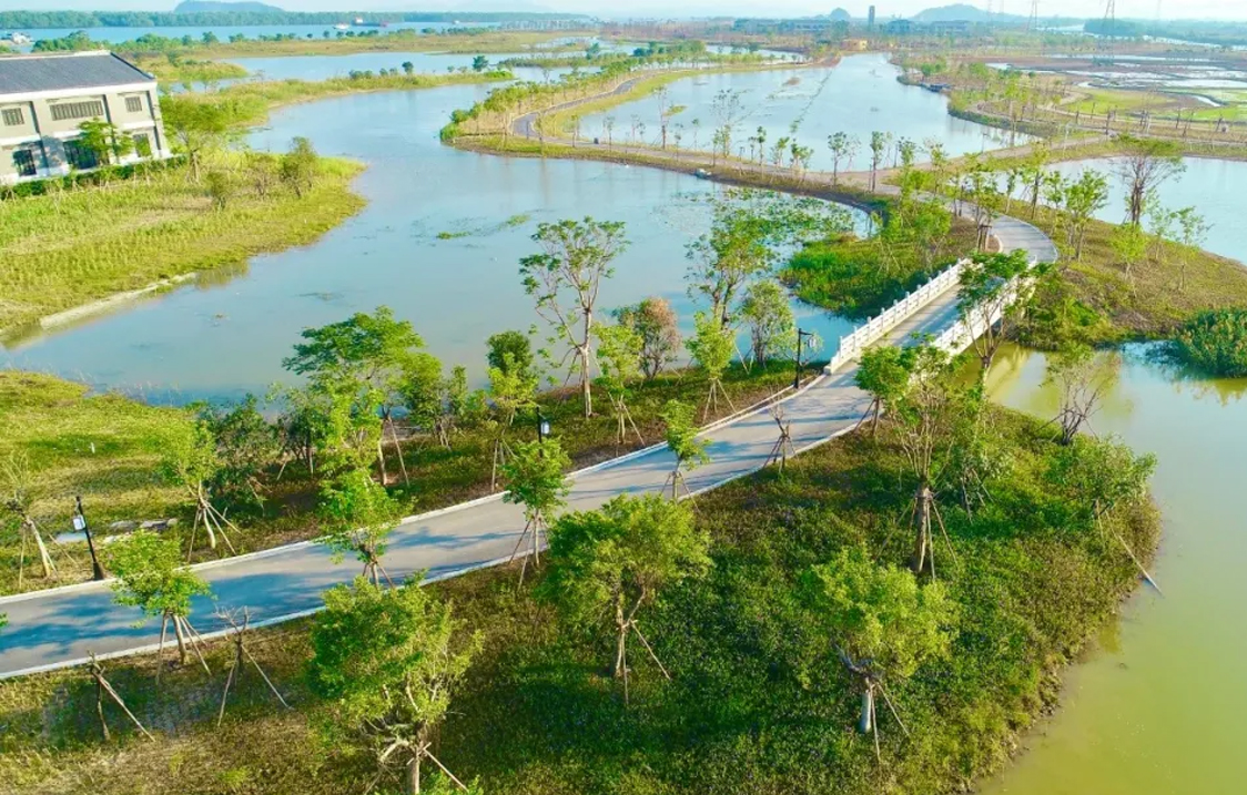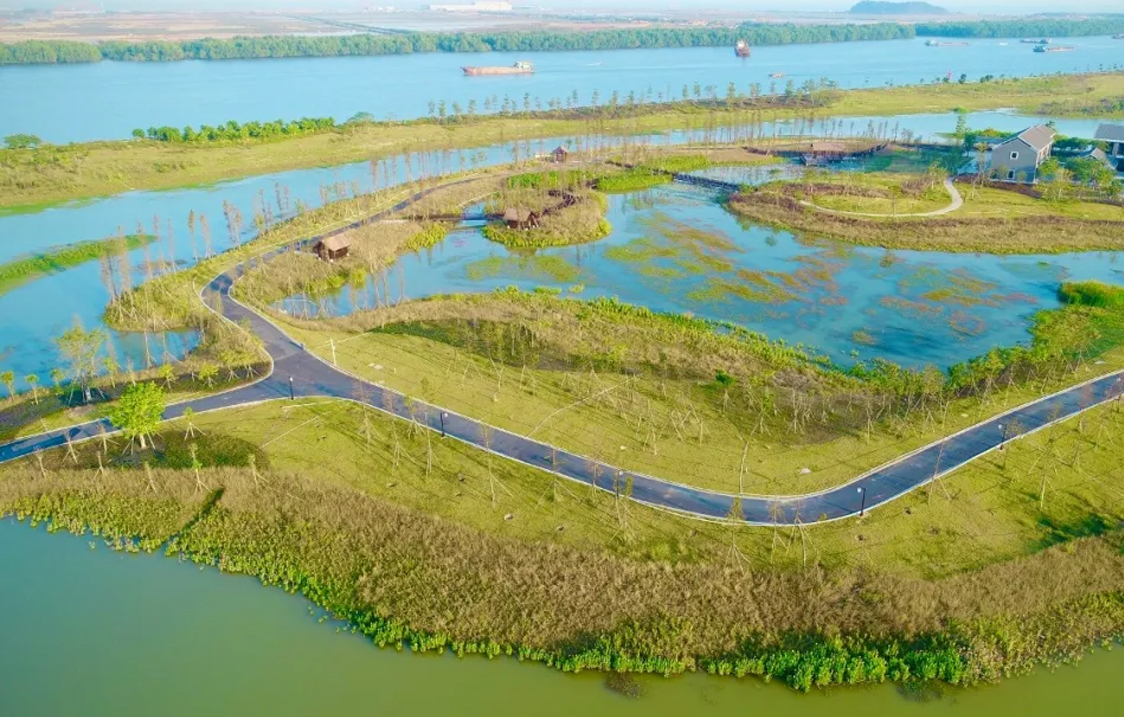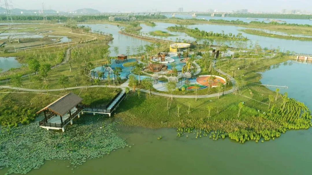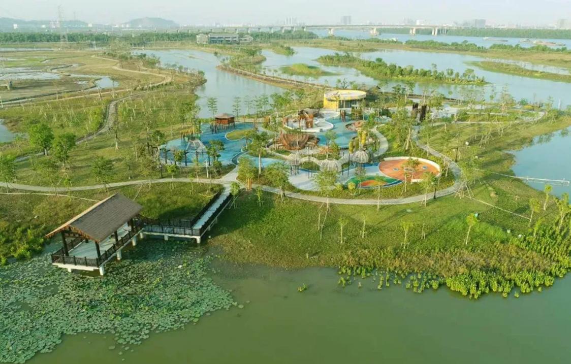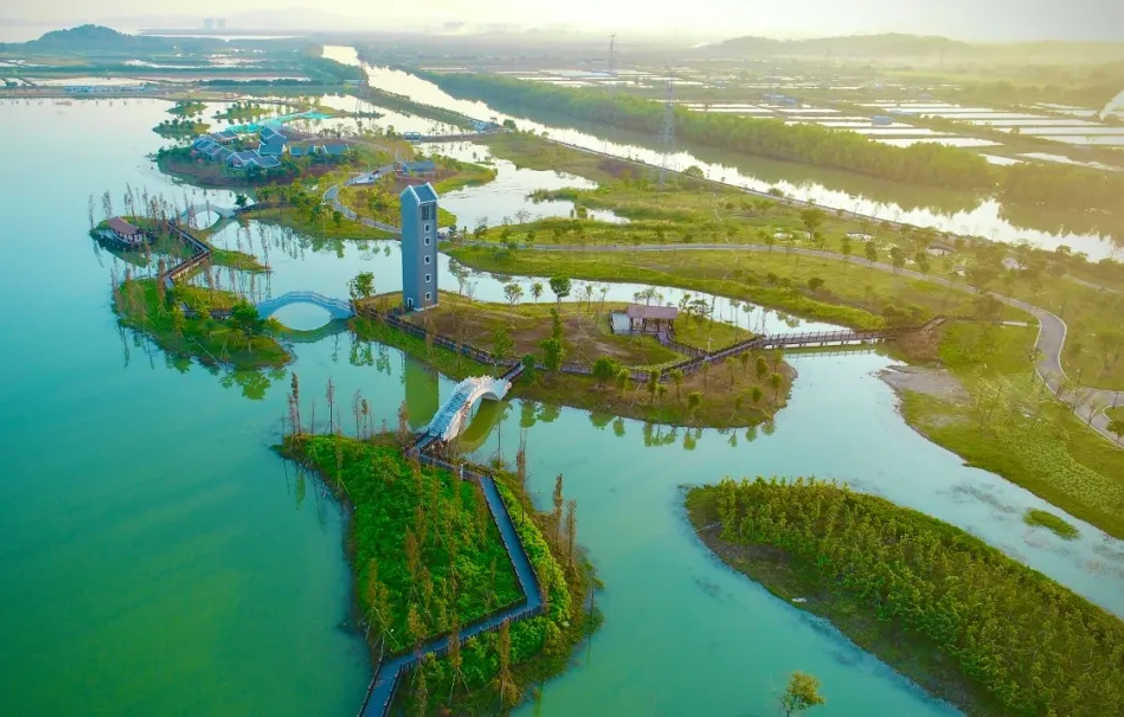 广东中山翠亨国家湿地公园位于翠亨新区南朗镇橫门西水道,规划面积625.6公顷,长5.4公里,其中陆地面积243.9公顷,湿地面积395.44公顷,湿地率63.21%。规划区内包括河口水域、红树林、永久性河流、草木沼泽等多种湿地类型,独具岭南风格的生态系统,50公顷独特的红树林景观为湿地公园增加了宝贵的研究价值。